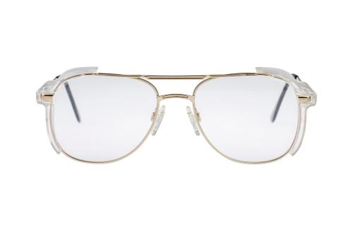 Conventional aviator design. Ideal for men and women. The screw attachment side shields are available in clear or tinted finish.